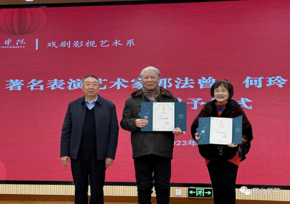 贾云霄表示,郭法曾老师、何玲老师是业内德高望重的顶级表演艺术家及行业专家。13年来,二位老师怀着教书育人、传承影视表演艺术的初心应邀到我校任教,他们深厚扎实的艺术功底、德艺双馨的人格魅力、宽广独特的专业视野、以生为本的教育理念、严格细致的治学态度、精益求精的艺术追求,影响、造就了一届又一届的邢台学院学子。大学之大,大师为要。近年来,戏剧影视艺术系成绩卓著,成为学校转型发展和服务地方文化事业的排头兵,无不凝结着二位老师的鞠躬尽瘁和呕心沥血。